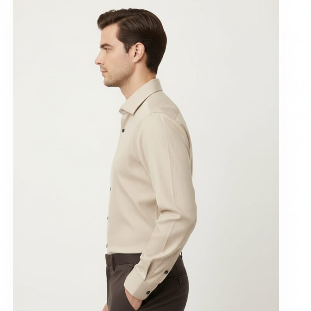 • Structured Point Collar: A crisp, reinforced collar designed to stay perfectly in place, providing a professional frame for your face.
