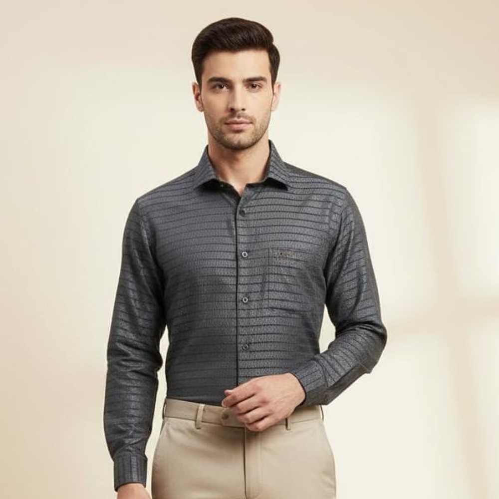 This shirt features a rich, Grey hue enhanced by a sophisticated horizontal micro-ribbed texture that adds visual depth and a luxurious hand-feel. Designed with a sharp slim fit, it provides a clean, contemporary silhouette.
